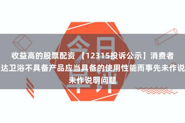 收益高的股票配资 【12315投诉公示】消费者投诉惠达卫浴不具备产品应当具备的使用性能而事先未作说明问题