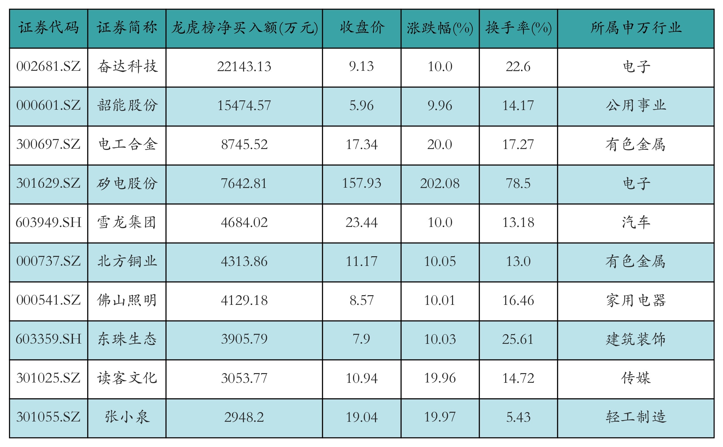 昨日龙虎榜营业部净买入额前10详情见下表: